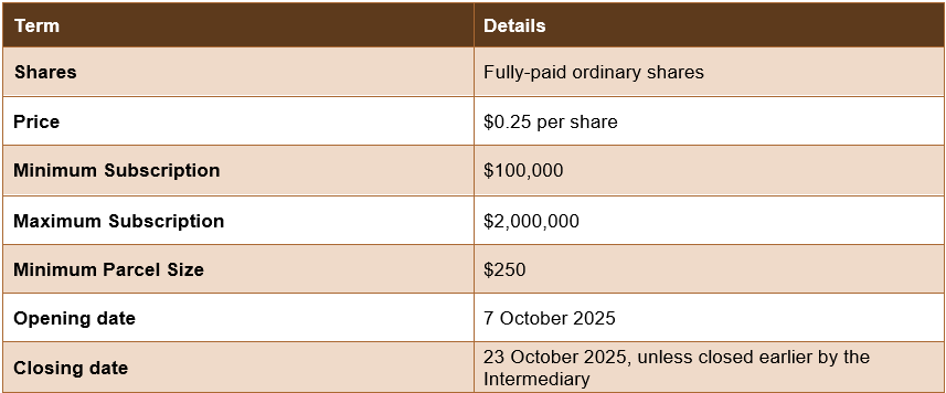 The Offer is subject to a Maximum Subscription amount of $2,000,000. If the Maximum Subscription is reached, the Offer will close early. Applications will be treated on a time priority basis and may be subject to scale back, so please fund your application as soon as possible.
