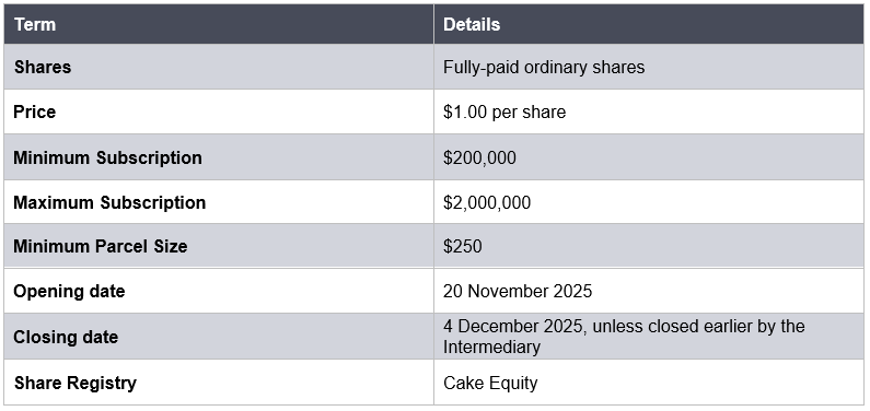 The Offer is subject to a Maximum Subscription amount of $2,000,000. If the Maximum Subscription is reached, the Offer will close early. Applications will be treated on a time priority basis and may be subject to scale back, so please fund your application as soon as possible.