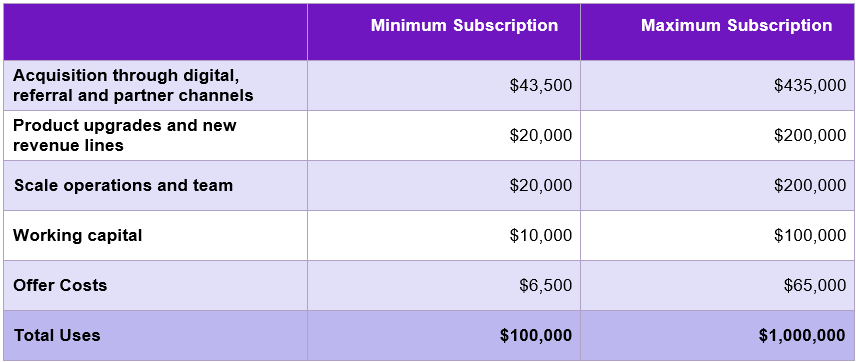 For more information, please read the Use of Funds section of the offer document.