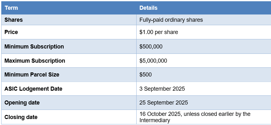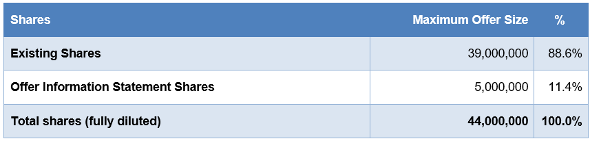 The Offer is subject to a Maximum Subscription amount of $5,000,000. If the Maximum Subscription is reached, the Offer will close early. Applications will be treated on a time priority basis and may be subject to scale back, so please fund your application as soon as possible.