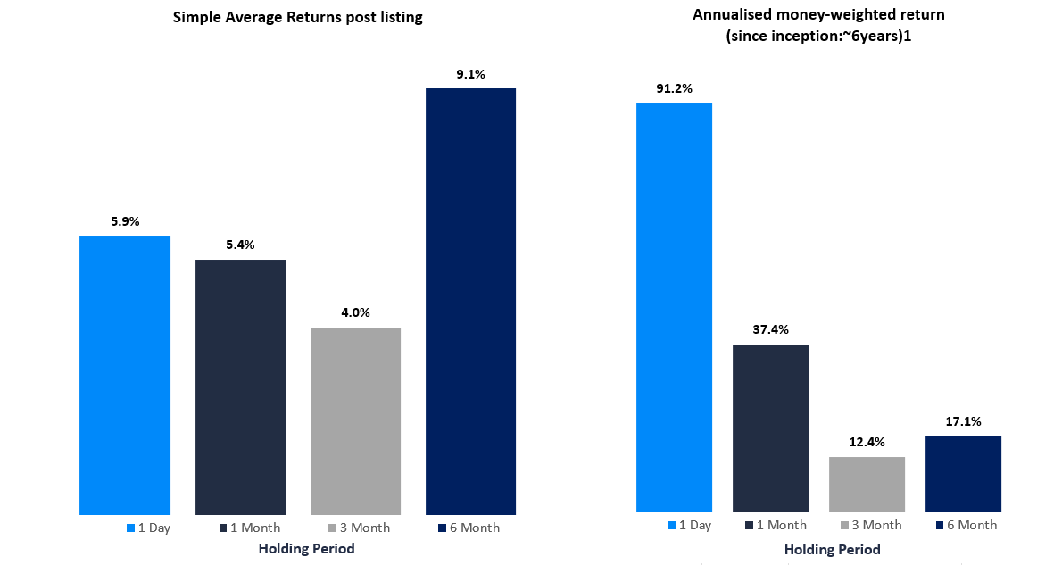 For OnMarket investors who have followed this simple strategy since inception (~6yrs), you would have seen a simple annualised money-weighted return of 17.49% when selling your OnMarket IPOs and Placements 6 months post-listing or resumption of trading.