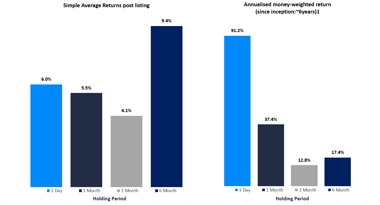 For OnMarket investors who have followed this simple strategy since inception (~6yrs), you would have seen a simple annualised money-weighted return of 17.41% when selling your OnMarket IPOs and Placements 6 months post-listing or resumption of trading.
