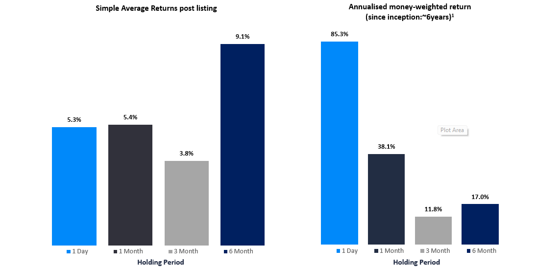 For OnMarket investors who have followed this simple strategy since inception (~6yrs), you would have seen a simple annualised money-weighted return of 17.02% when selling your OnMarket IPOs and Placements 6 months post-listing or resumption of trading.